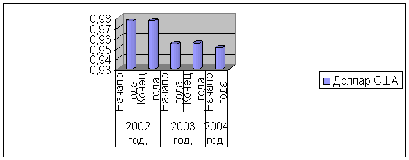 Динамика курса доллара США по отношению к EUR евро» за период 2002-2004 года