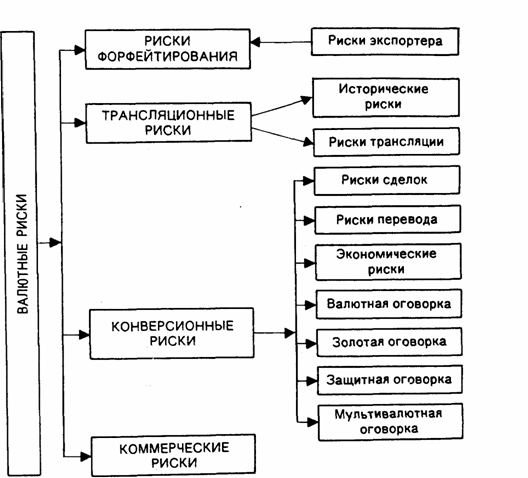 Со своей стороны, валютные риски структурируются следующим образом: коммерческие, конверсионные, трансляционные, риски форфейтирования (рис1 и 2).