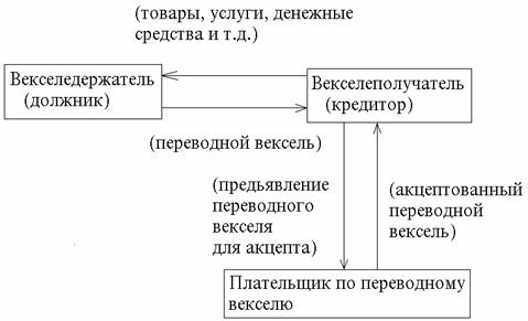 Что касается кредитной функции, то обычным являлось оформление товарного кредита переходным векселем по следующей схеме: поставщик товара (векселедержатель кредитного векселя) одновременно с заключением сделки выставляет переводной на покупателя с указанием себя, как получателя платежа по векселю (приказу векселедержателя).