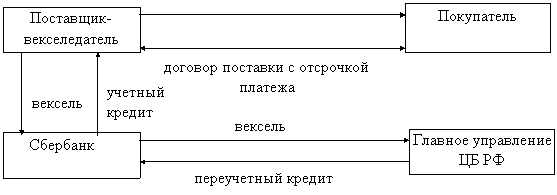 Принцип вексельного кредита заключается в том, что предприятие-ссудозаемщик расплачивается с кредиторами не реальными денежными средствами, а банковскими обязательствами, оформленными в виде векселей. Основное преимущество такого кредита для предприятий заключается прежде всего в низкой стоимости пополнения оборотных средств (низкой процентной ставкой по кредиту). Это объясняется тем, что Сбербанку не требуется отвлекать денежные средства на длительный срок для осуществления операций. Ссудозаемщик, получая кредит в виде банковских векселей, использует их в дальнейшем в качестве платежного средства с целью погашения кредиторской задолженности и снижения себестоимости продукции по статье произведенных материальных затрат (вследствие низкой процентной ставки вексельного кредита).