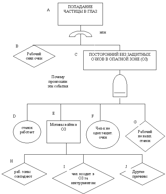 1. Выбирается уровень детализации эрготической системы, и рассматриваются все возможные нежелательные события в системе.