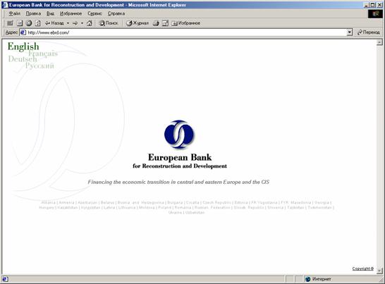 Мне очень понравился сайт Европейского банка реконструкции и развития. Здесь можно найти абсолютно всю информацию про этот банк, причём на четырёх языках (английском, французском, немецком и русском - кому какой нравится!).