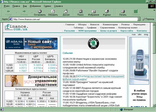 Мне кажется, что этот сайт менее интересен, чем предыдущий, хотя… здесь можно просмотреть курс валют, есть ссылка на банк Аваль, новости и события, периодику, таблицы, графики, справочники. Конечно, как и на всех других сайтах, есть карта этого сайта.