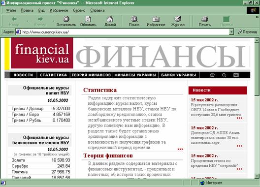 - Финансы Украины. Этот раздел посвящен деятельности коммерческих банков Украины. Освещены вопросы, касающиеся управления банком, оценке качества банковского менеджмента.