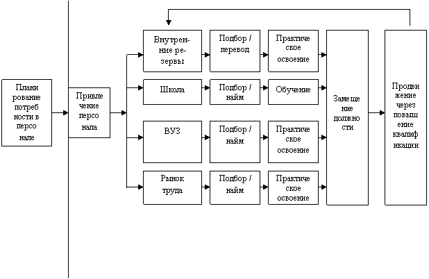 Второй уровень – профессиональные подразделения по работе с персоналом (отдел кадров, группа психологов, Учебный центр, отдел материально-технической поддержки и др.) |