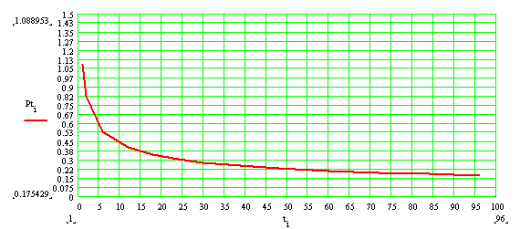 1.2.1. P1=P4t0.4. Для удобства нарисуем таблицу зависимости Pt=P1t-0.4