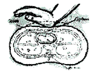 кончиками пальцев с частотой 100-120 нажатий в минуту. Если оживление проводит один человек, то через каждые 15 нажатий на грудину с интервалом в 1 секунду,он должен приостановить массаж,провести 2 сильных искусственных вдоха методом "рот в рот" или "рот в нос".При участии 2-х оживляющих необходимо после каждых пяти нажатий производить вдох.Если через час после начала массажа и вентиляции легких сердечная деятельность не возобновляется и зрачки остаются широкими,оживдение можно прекратить.При появлении четких признаков истинной смерти оживление может быть прекращено раньше.