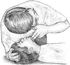 Чтобы освободить дыхательные пути от запавшего языка, приподнимите ребенку подбородок и отведите голову назад. Если вы подозреваете у ребенка травму позвоночника, выдвиньте его нижнюю челюсть вперед, стараясь при этом не двигать голову и шею. Рот ребенка должен оставаться открытым. |