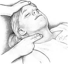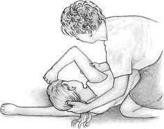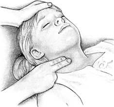 Чтобы освободить дыхательные пути от запавшего языка, приподнимите ребенку подбородок и отведите голову назад. Если вы подозреваете у ребенка травму позвоночника, выдвиньте его нижнюю челюсть вперед, стараясь при этом не двигать голову и шею. Рот ребенка должен оставаться открытым. |