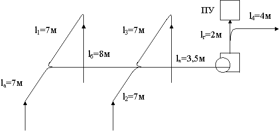 Потерю давления в штанообразном тройнике с углом ответления в 15° ввиду малости (кроме участка 2) не учитываем. Таким образом, суммарный коэффициент местных сопротивлений на участках а,1,2,3