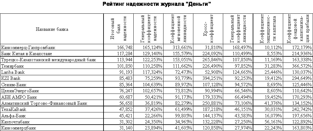 Расчет рейтинга надежности банков журнала «Деньги» приведен в приложении (табл. №№26-39).