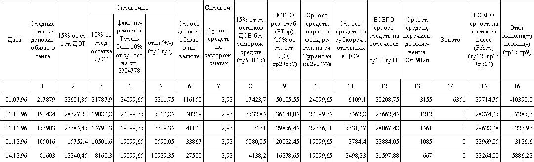 Данные о резервных требованиях по Алматинскому управлению Туранбанка.