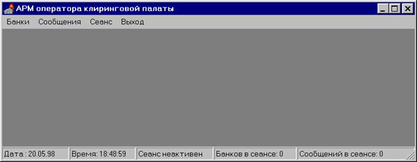 Модуль «АРМ оператора клиринговой палаты» устанавливается на сервере клиринговой палаты и обеспечивает добавление и удаление банков-участников клиринговой системы, прием, обработку платежных документов, проверку их на наличие ошибок и проведение окончательных взаиморасчетов между банками-членами клиринговой палаты. Кроме того, данный модуль инициирует начало клирингового сеанса, ведет статистику платежей и закрывает сеанс по истечению заданного срока. Работой модуля управляет один человек – оператор клиринговой палаты, наделенный особыми полномочиями.
