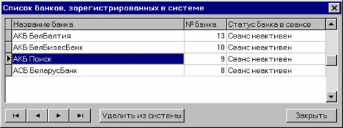 Рис.3.2. Окно со списком банков-членов клиринговой палаты.