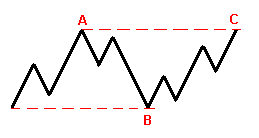 Волна (В) достигает вершины волны (А), в то время как волна (С) так и не опускается до уровня основания волны (А). В этом случае бычий рынок обладает более высоким потенциалом, и, наоборот, для медвежьего рынка.