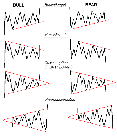 Обычно появляются на (4) волне. Они также могут появиться на волне (В), входящую в корректирующую конфигурацию (А) (В) (С). Таким образом, при восходящей тенденции их можно охарактеризовать как бычью, так и медвежью модель одновременно. Обычно это фигура продолжения, если это не вершина. Как правило, является продолжением существующей тенденции после еще одной волны роста.