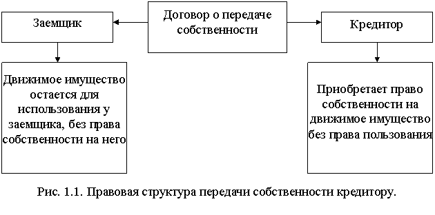Для того чтобы движимое имущество могло быть в пользовании заемщика и в то же время служить гарантией возврата кредита, используется передача права собственности на него кредитору в обеспечении имеющегося долга.
