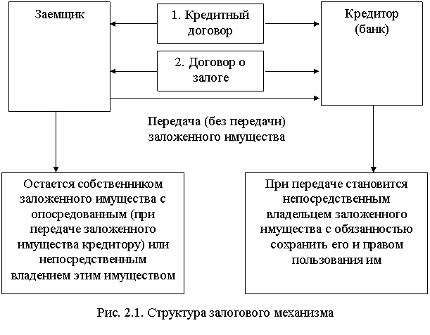 С правовой точки зрения структуру залогового механизма можно представить на рис. 2.1.[7]