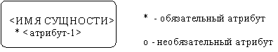 Каждый атрибут идентифицируется уникальным именем, выражаемым грамматическим оборотом существительного, описывающим представляемую атрибутом характеристику. Атрибуты изображаются в виде списка имен внутри блока ассоциированной сущности, причем каждый атрибут занимает отдельную строку. Атрибуты, определяющие первичный ключ, размещаются наверху списка и выделяются знаком "#".
