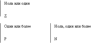 Связь может дополнительно определяться с помощью указания степени или мощности (количества экземпляров сущности-потомка, которое может существовать для каждого экземпляра сущности-родителя). В IDEF1X могут быть выражены следующие мощности связей: