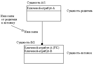 Если экземпляр сущности-потомка однозначно определяется своей связью с сущностью-родителем, то связь называется идентифицирующей, в противном случае - неидентифицирующей.