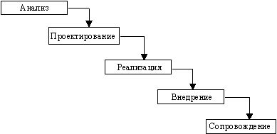 В изначально существовавших однородных ИС каждое приложение представляло собой единое целое. Для разработки такого типа приложений применялся каскадный способ. Его основной характеристикой является разбиение всей разработки на этапы, причем переход с одного этапа на следующий происходит только после того, как будет полностью завершена работа на текущем (рис. 1.1). Каждый этап завершается выпуском полного комплекта документации, достаточной для того, чтобы разработка могла быть продолжена другой командой разработчиков.