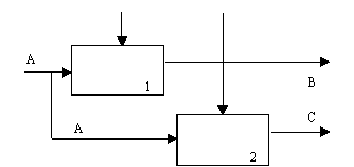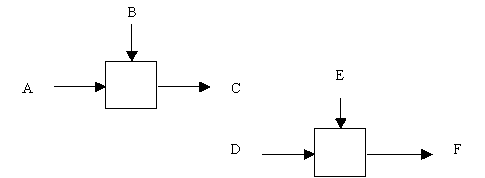 (5) Тип последовательной связности. На диаграммах, имеющих последовательные связи, выход одной функции служит входными данными для следующей функции. Связь между элементами на диаграмме является более тесной, чем на рассмотренных выше уровнях связок, поскольку моделируются причинно-следственные зависимости (рисунок 2.11).