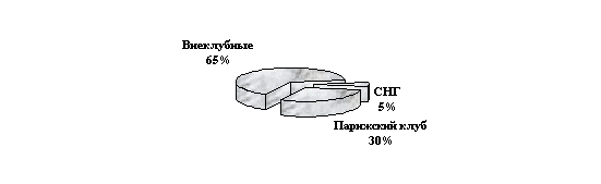 На 1999-2001 года приходится пик расчетов страны по внешнему долгу. Ежегодно Россия на выплату процентов и погашение собственно кредитов и займов должна тратить 18-20 млрд. долларов (сумма, сопоставимая с доходной частью бюджета). Надвигающийся пик образовался из-за того, что обязательства по старым, еще советским долгам, наложились на обязательства по кредитам и займам, полученным после 1.01.92 года. В принципе размер суверенного российского долга сравнительно невелик. На начало 1998 года общая задолженность перед внешними кредиторами составила примерно 130 млрд. $, из них 100 млрд. осталось от СССР. До прихода к власти С. Кириенко сумма внешнего долга не превышала 35% ВВП и не являлась критической. Однако за 5 месяцев правления "технократический кабинет" к этой сумме добавил примерно 16-17 млрд. долларов: крупные заимствования, сделанные за Апрель-Август; конверсия внутреннего долга во внешний и резкая девальвация рубля привели к тому, что внешний долг сейчас близок к 45% ВВП.
