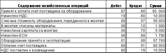 Пример. Приобретено оборудование, требующее монтажа, стоимостью