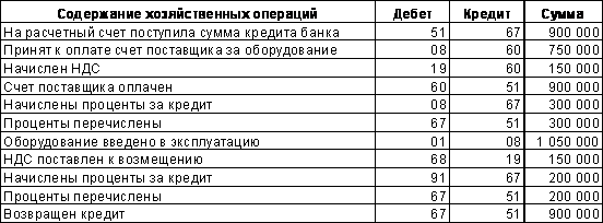 Пример. Организация получила кредит на 2 года на сумму 900 000 рублей на покупку оборудования. Организация выплатила банку проценты: до ввода в эксплуатацию 300 000 рублей, после ввода – 200 000. Оборудование приобретено на сумму 900 000 рублей, в т. ч. НДС.