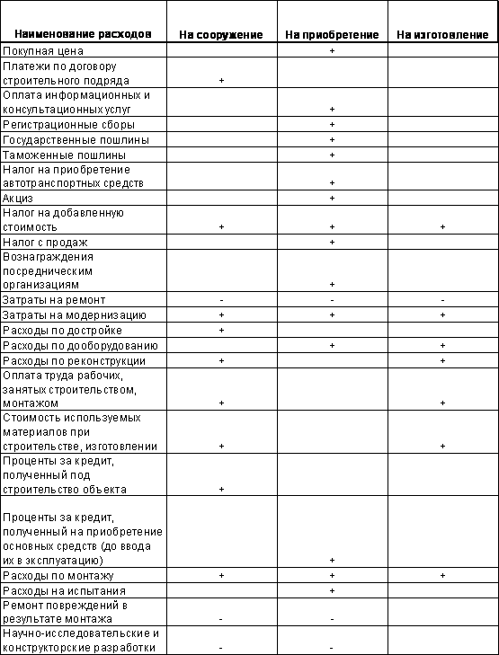 Состав капитализируемых затрат, включаемых в первоначальную стоимость основных средств