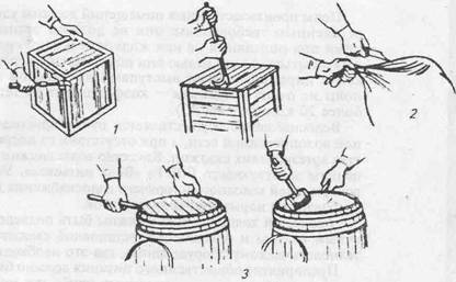 Для вскрытия и распаковки тары необходимо использовать соответствующие исправные инструменты — гвоздодеры, клещи и др. (рис. 2). Консервные банки открывают специальными приспособлениями и ключами.