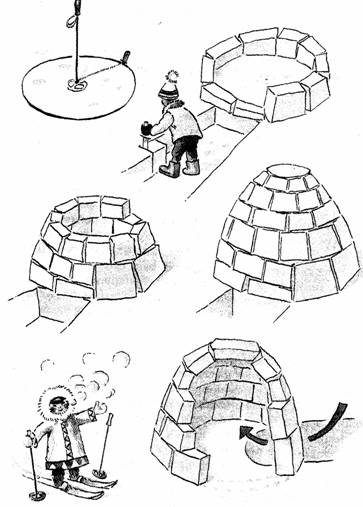 При необходимости можно оборудовать более надежное укрытие. Самое надежное и прочное зимнее укрытие- ИГЛУ. Оно пришло к нам от эскимосов- жителей Арктики.