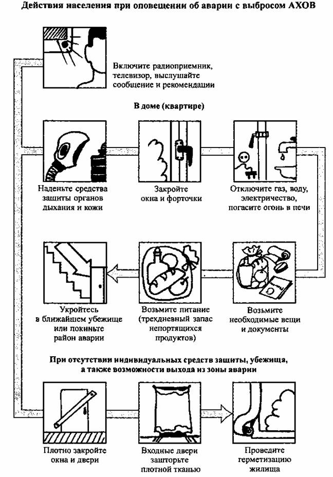 Население, проживающее вблизи химически опасных объектов, должно знать свойства, отличительные признаки и потенциальную опасность АХОВ, используемых на данном объекте, способы индивидуальной защиты от поражения АХОВ, уметь действовать при возникновении аварии, оказывать первую медицинскую помощь пострадавшим.