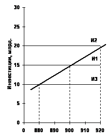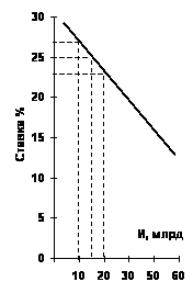 Предположим, что ставка процента составляет 25%, тогда из рис. 1.3 видим, что будет осуществлено относительно мало инвестиций (20 млрд. грн.), поскольку норма прибыли проектов должна превышать 25%. При снижении ставки процента до 15% видим, что количество и сумма инвестиций значительно возрастает (50 млрд. грн.), так как становятся прибыльными проекты с меньшей нормой прибыли.