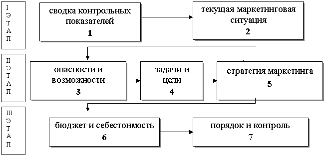 Именно программа маркетинга является фундаментом для дальнейшего построения всей работы банка. Я попыталась адаптировать программу маркетинга, давно применяемую в производственных отраслях народного хозяйства, к банку. Она состоит из целого ряда последовательно связанных элементов: