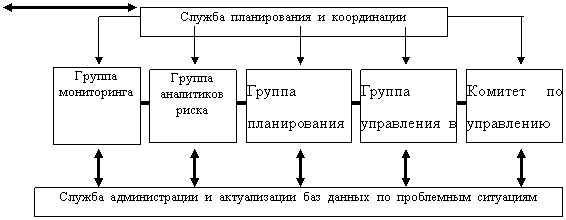 Информационное, методическое и инструментальное обеспечение основных исполнительных групп поддерживается службой администрирования и актуализации баз данных по проблемным ситуациям. Ее задача - выявление или прогнозирование потребностей отдела, разработка методик, моделей, программно-алгоритмических и информационных средств управления рисками.