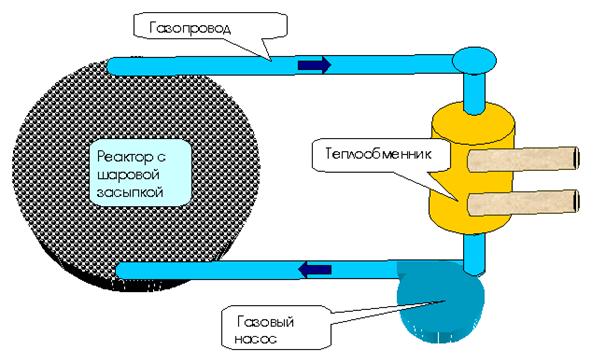 В реакторе с шаровой засыпкой активная зона имеет форму шара, в который засыпаны тепловыделяющие элементы, также шарообразные. Каждый элемент представляет из себя графитовую сферу, в которую вкраплены частицы оксида урана. Через реактор прокачивается газ - чаще всего используется углекислота СО2. Газ подается в активную зону под давлением и впоследствии поступает на теплообменник. Регулирование реактора осуществляется стержнями из поглотителя, вставляемыми в активную зону.