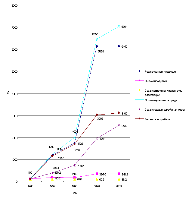 Доля СХРП «Супер» в выпуске продукции в целом по ВБРТФ велика. Она колебалась в анализируемый период с 63% в 1998 году до 68% в 2000 г. Динамика выпуска продукции этим подразделением в анализируемый период представлена в таблице 4.