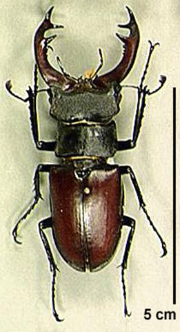 Он один из самых известных жуков и самый большой жук в Европе. Это очень красивый и величественный жук, встреча с ним запоминается на всю жизнь. Оленем его называют за непомерно огромные челюсти самцов, похожие на рога настоящих оленей. "Рога" эти, как у косуль, имеют три конца, но острия их направлены внутрь, навстречу друг другу. Это оружие, которым жуки не бодают, а кусают, подобно тому, как кусают клешнями раки и крабы. Длиной чуть ли не в полный корпус самого жука, который размером с небольшую мышь, они торчат вперед как всегда готовое к бою оружие. Но это оружие не защиты, а нападения, и не на жертву, а на такого же жука, может быть, даже на родного брата. Крепкие, полированные, "рога" легко прокусывают кожу пальца взрослого человека.
