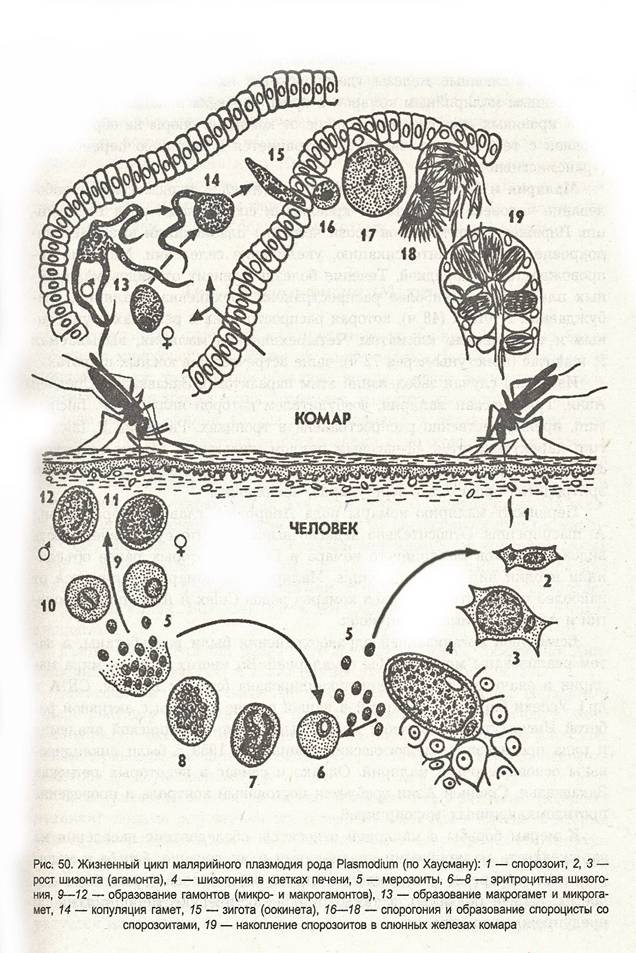 1. При укусе в кровь человека попадают спорозоиты (бесполое поколение).