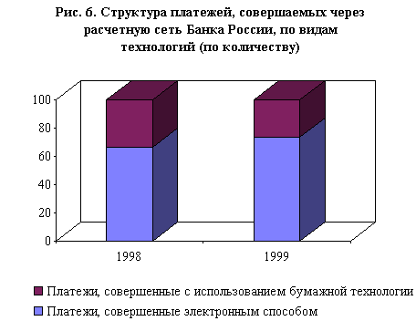 Мировой опыт свидетельствует, что для создания современной экономики необходим переход от “бумажных платежей” и промежуточных схем автоматизированной обработки документов к наиболее прогрессивным методам электронных расчетов. Основные вехи на этом пути в России уже определены. Банком России еще в 1996г. принята и утверждена стратегия развития платежной системы России до начала следующего столетия. Многое из этой программы уже выполнено. Об этом более полно раскрыто во 2-3 разделах диплома. Но многое и не сделано, хотя до конца этого века остались считанные месяцы. Особый удар Программе нанес финансовый кризис осени 1998г., который в значительной степени свел на нет ожидавшийся всплеск интереса к электронной коммерции. Это заметно даже по периодической печати. Если в 1996-1997гг. на эту тему было опубликовано много статей в различных экономических журналах, то в 1999-2000гг. этого уже нет. Хочется верить, что это временное затишье. Жизнь должна будет взять свое. И, как в других передовых развитых экономических странах, развитие безналичных денежных расчетов с применением электроники пойдет в России значительно быстрее. Старый лозунг “Догнать и перегнать” восторжествует и в нашей стране.