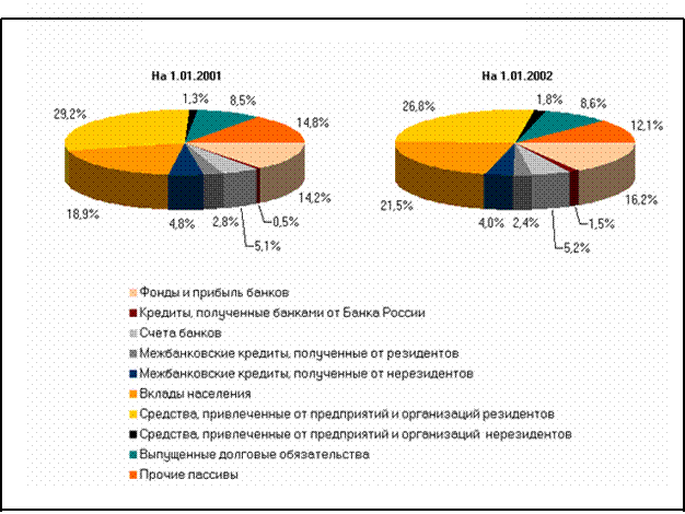 Рисунок 9 – Структура пассивов банковского сектора в 2000 и 2001 годах