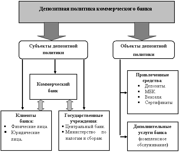 Рассматривая сущность депозитной политики коммерческих банков, необходимо затронуть такие вопросы, как: субъекты и объекты депозитной политики, принципы ее формирования, а также границы депозитной политики.