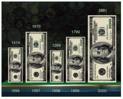 Рисунок №8. Динамика остатков вкладов в инвалюте 1996 – 2000 гг. в млн. дол. США.