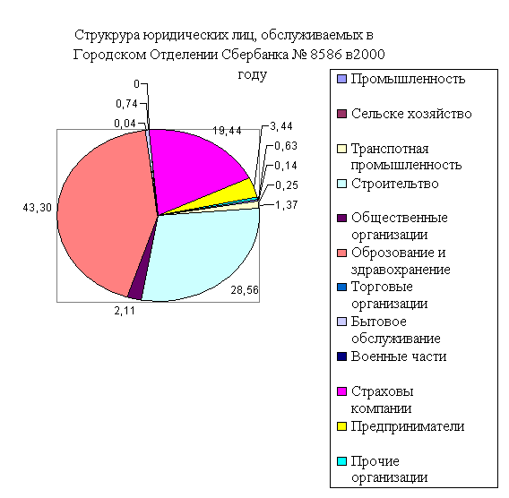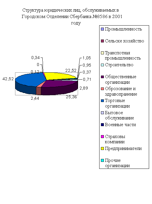 корпоративных клиентов, обслуживаемых в Городском Отделении Сбербанка №8586 на 675 предприятий и организаций в 2001 году по сравнению с 2000 годом. Это связано с ликвидацией многих коммерческих банков, предприятия перешли на обслуживание в Сбербанк.