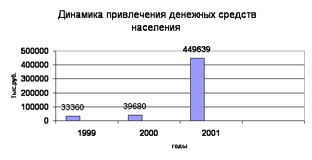 Динамика изменений за последние годы свидетельствует об укреплении депозитной базы Отделения Сбербанка №8586.Так в 1999 году сумма ресурсов составляла 333612 тыс. р., в 2000 году она увеличилась на 63188 тыс. р. и составила 396800 тыс. р. за последний год сумма ресурсов увеличилась на 52839 тыс. р. и достигла 449639 тыс. р.