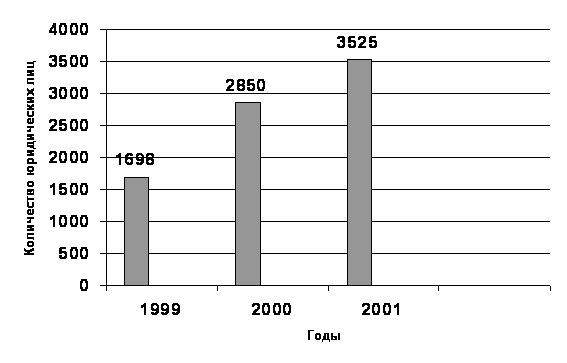Динамика изменений свидетельствует об увеличении обслуживания корпоративных клиентов в Городском отделении Сбербанка №8586. Так, в 1999 году количество клиентов было 1698 предприятий и организаций, в 2000 году их численность увеличилась на 1152 и составила 2850 организаций. За 2001она увеличилась на 675 и достигла 3525 предприятий и организаций.