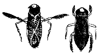 | Клоп водяной Aphelochirus montandoni (aestivalis) не имеет крыльев, дышит жабрами, ведет придонный образ жизни в реках с быстрым течением | Гребляки, сем. Corixidae встречаются в озерах и прудах с богатой растительностью. Быстро плавают спиной вверх, часто поднимаясь к поверхности. Самцы весной стрекочут под водой. Ночью нередко совершают перелеты в поисках новых водоемов |
