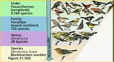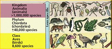 Рис. 1. Примеры основных таксономических категорий: царство, тип, класс, отряд, семейство, род и вид (По On-Line Biology Book, 2002). |